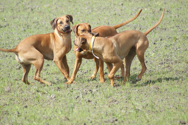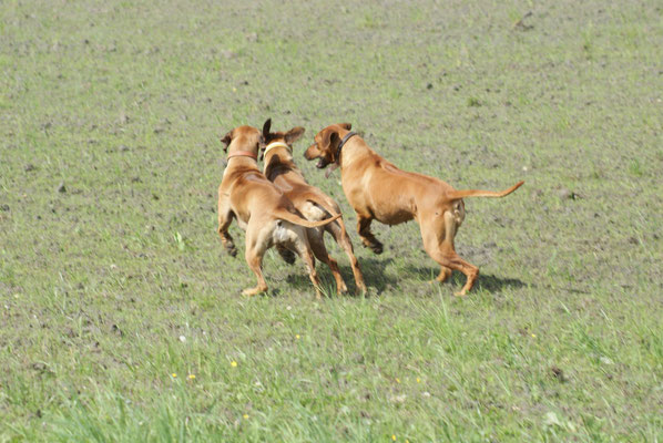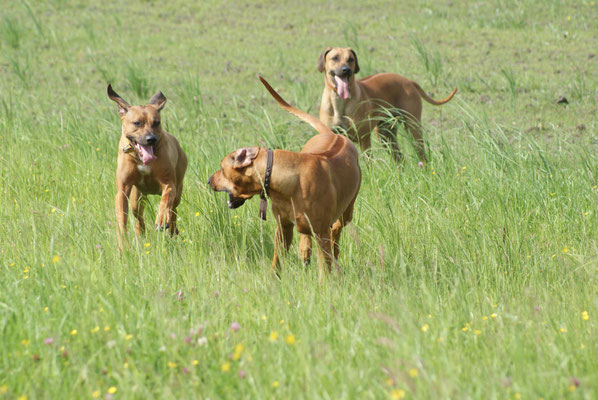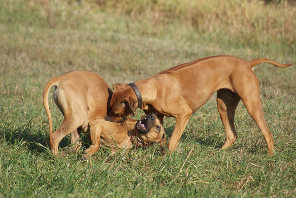 Heute alle beim Toben....Toshamaus meint sie muss mit den jungen mithalten... so schön welch Lebensfreude in dieser Hündin steckt, Chameena frisst gerade ihre Halbschwester auf :-D...