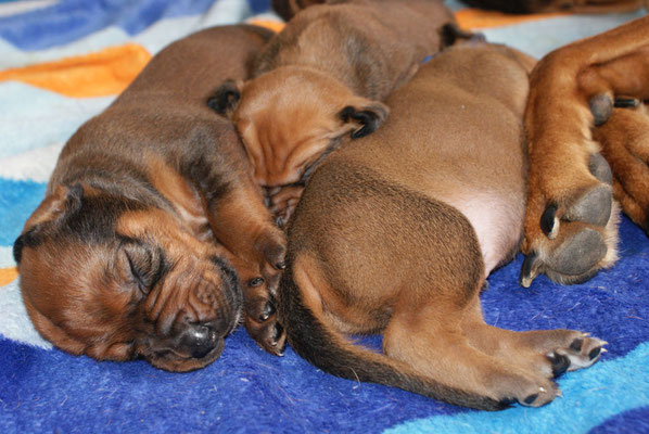 Morgen sind wir 1 Monat alt... Züchtermami war im Moment ein bisschen aus dem Konzept geworfen, da auch bei ihr eine Erkältung keinen Halt machte :-(....